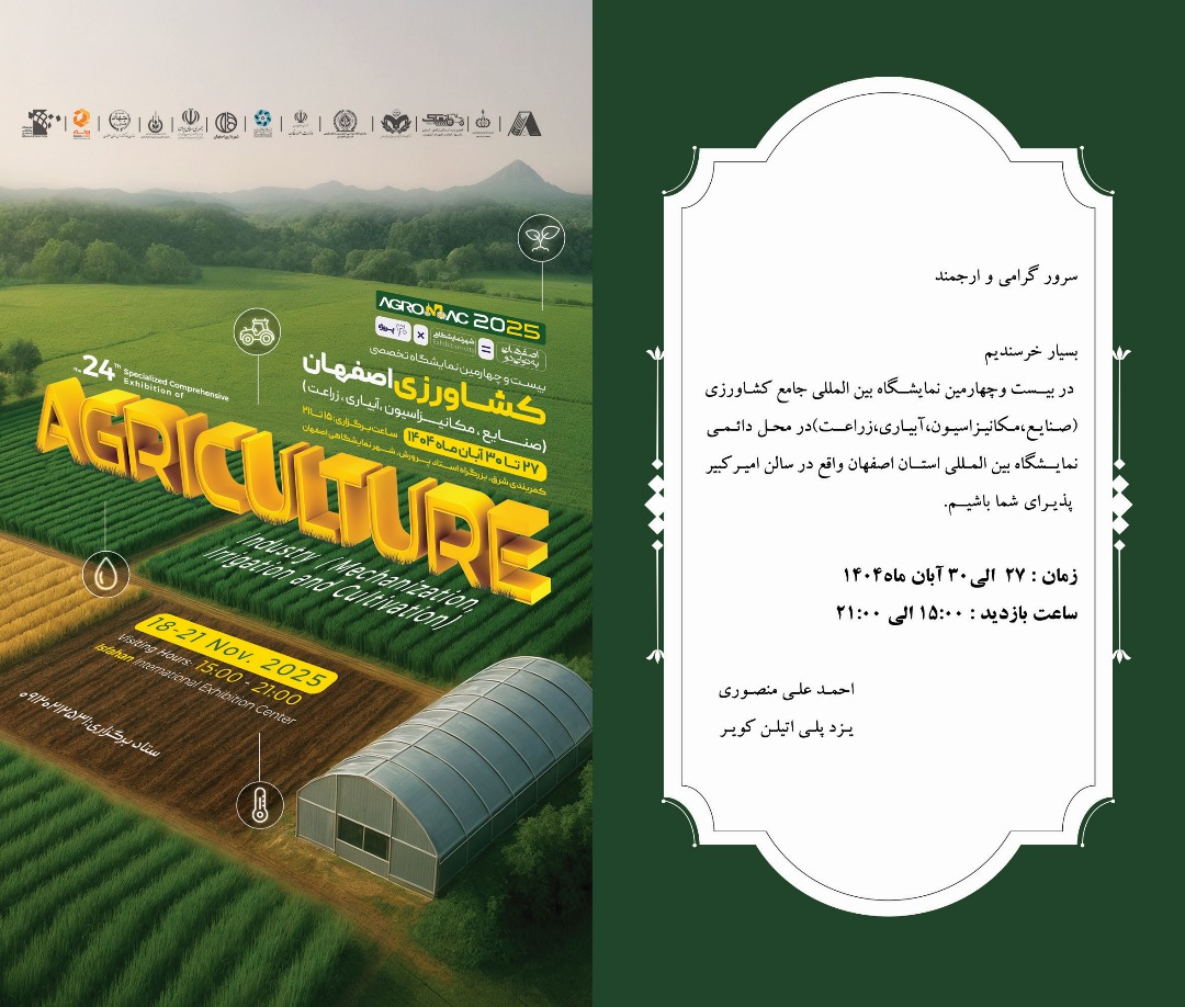 حضورشرکت یزد پلی اتیلن کویر در بیست و چهارمین نمایشگاه تخصصی کشاورزی ( اصفهان )